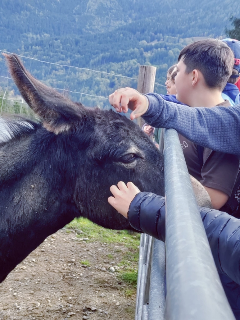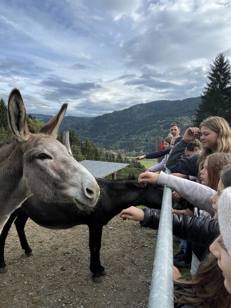 Hier hat jedes Tier seine Geschichte – liebevoll betreut von Hans Leitner und seinem Team. Ob Esel, Wildschweine, Gänse, Hühner, Hunde…es wird versucht, jedem Tier ein angenehmes und artgerechtes Leben zu ermöglichen. Den Schülern und Schülerinnen wurde hier gezeigt, wie respektvoller Umgang mit Tieren aussehen kann.