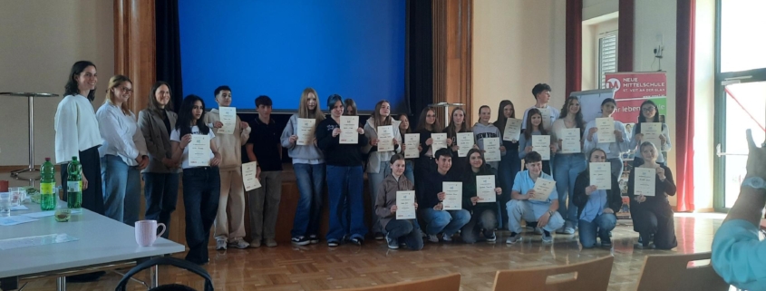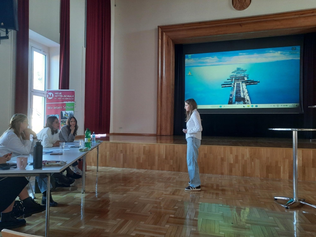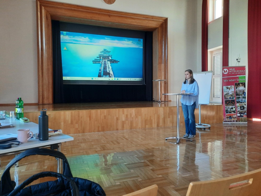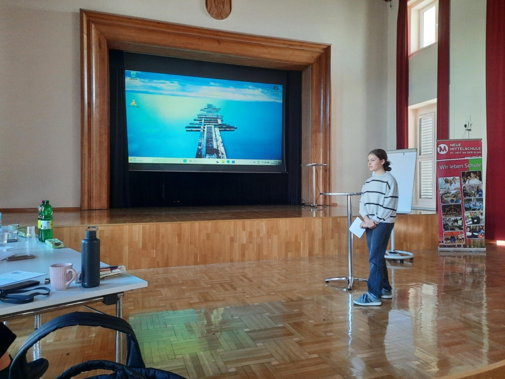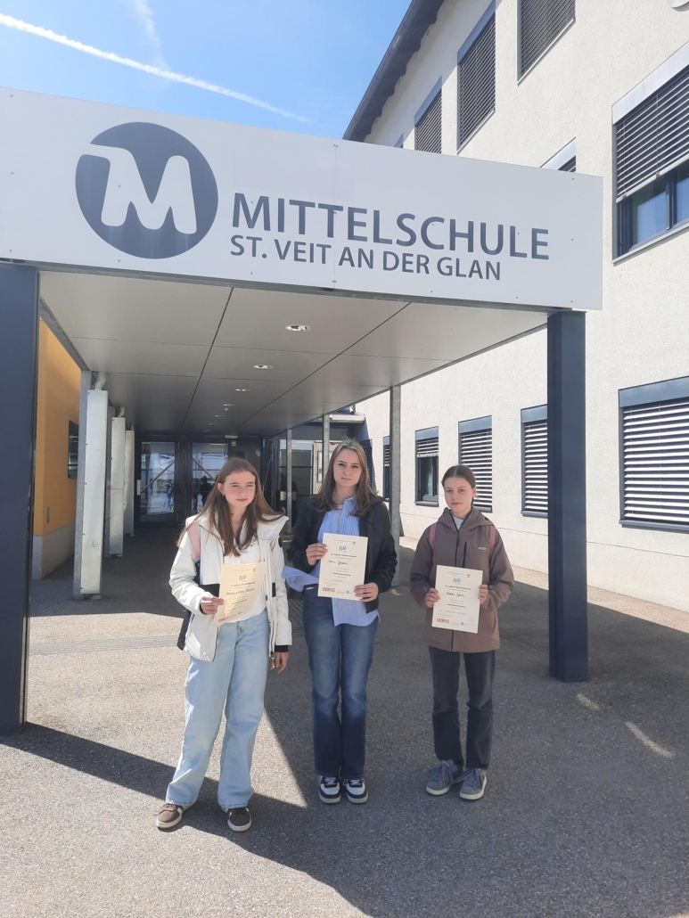 Unsere Schülerinnen Katrin Stocklauser (3A), Jana Hobel (4B) und Jasmin Grill (4C) gingen im Jänner 2026 als Siegerinnen der schulinternen Ausscheidung des diesjährigen Englisch-Redewettbewerbes (zur Begabungs- und Begabtenförderung) hervor und präsentierten ihre Rede nach einigen Wochen zusätzlicher Vorbereitung am 09. April in der Vorausscheidungsrunde an der Mittelschule St. Veit.