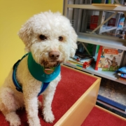 Wenn der Therapiehund in der Lesestunde durch Würfeln die Aufgaben aussucht oder für die richtigen Antworten der Schüler ein Leckerchen bekommt, strengen sich alle sehr an. So macht Lesen Spaß!